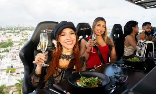 FlyDining is an engineering marvel, a precision crafted metal platform suspended 150 feet high by a 200 ton telescopic crane, creating a floating dining spectacle. Designed in Germany and meticulously assembled and inspected by top German experts, it blends thrill with unmatched safety. With 24 exclusive guests and a dedicated team of five, every moment at FlyDining becomes a breathtaking experience, ensuring not just a meal but a once in a lifetime memory.