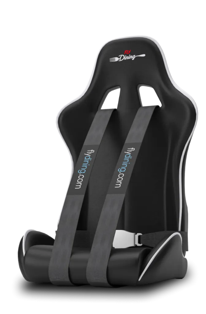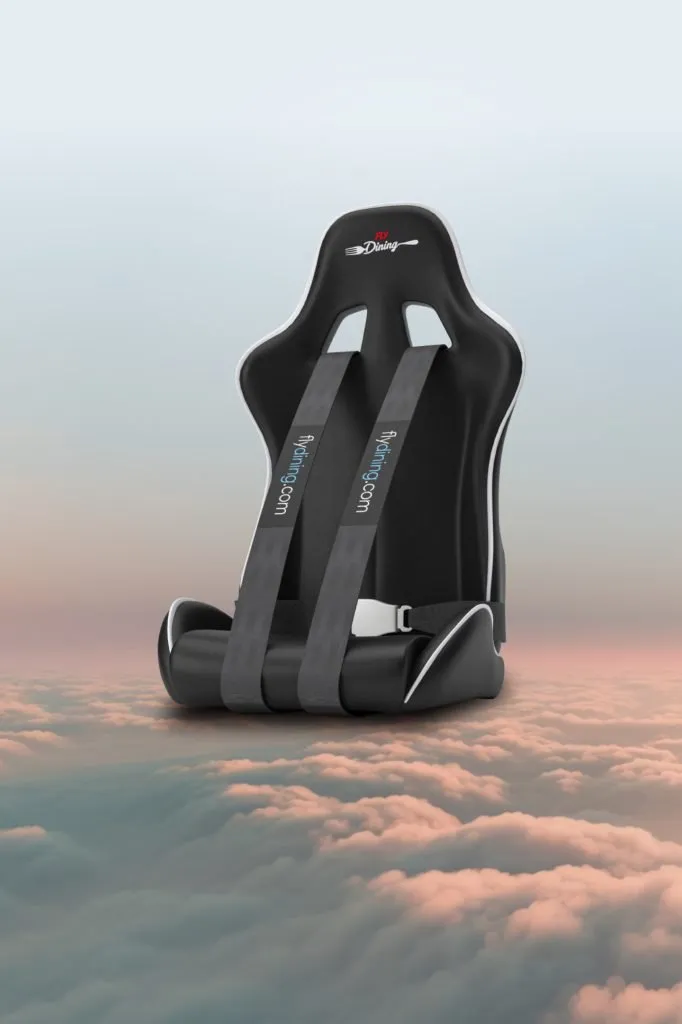 Experience ultimate comfort and security with the FlyDining leatherite chair, featuring a 180° reclining backrest and 170° rotation for the best seat in the sky. Dual safety metal ropes and a dual-belt aircraft-grade buckle ensure top-tier safety. Finished with an embroidered FlyDining logo, every ride is as premium as it is thrilling!